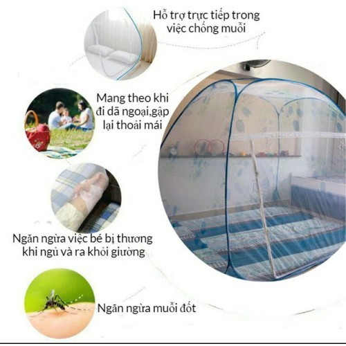 - Sản phẩm được làm bằng dây thép các bon công nghệ cao nên rất dẻo và bền đẹp- Màn chụp chống muỗi có thể đặt được trên giường , dưới sàn nhà hay đi du lịch