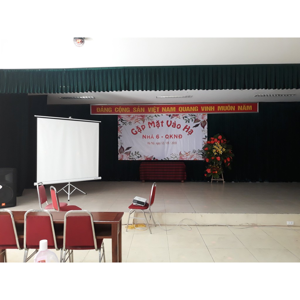 - Màn chiếu tỷ lệ 1:1, kéo lên hạ xuống tùy ý.