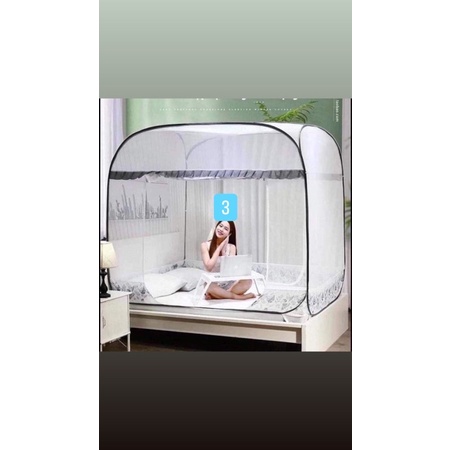 Nhà cửa & Đời sống > Chăn ga gối nệm > Mùng/ Màn chống muỗi || màn chụp đỉnh vuông gấp gọn loại 2 cửa 1 viền cao cấpCòn hàng