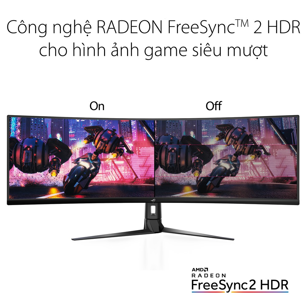 ROG Strix XG49VQ trang bị công nghệ FreeSync™ 2 HDR để cho hình ảnh siêu mượt với độ trễ thấp và độ sáng và độ tương phản tốt hơn. FreeSync 2 hỗ trợ xử lý độ trễ thấp đối với cả nội dung chuẩn và HDR, loại bỏ được độ trễ ngõ vào liên quan đến nội dung HDR.
