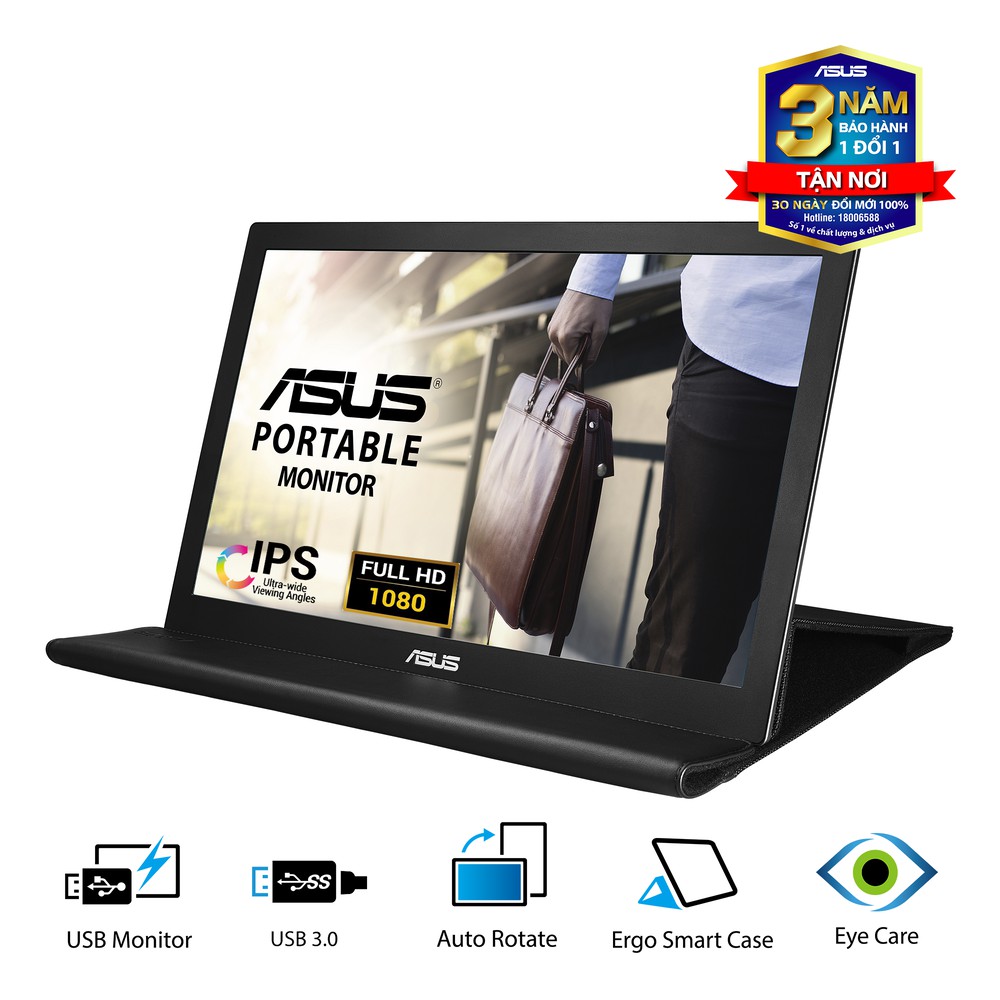 Màn hình USB mỏng và nhẹ nhất thế giới với lớp vỏ kim loại bóng bẩy Màn hình tự động xoay đi kèm trục điều chỉnh thông minh của ASUS - giá đỡ điều chỉnh hai chiều kiêm ốp bảo vệ Kích thước màn hình: 15.6" Độ phân giải: Full HD (1920 x 1080) Tỷ lệ màn hình: 16:9 Công nghệ tấm nền: IPS Cổng kết nối: USB 3.0