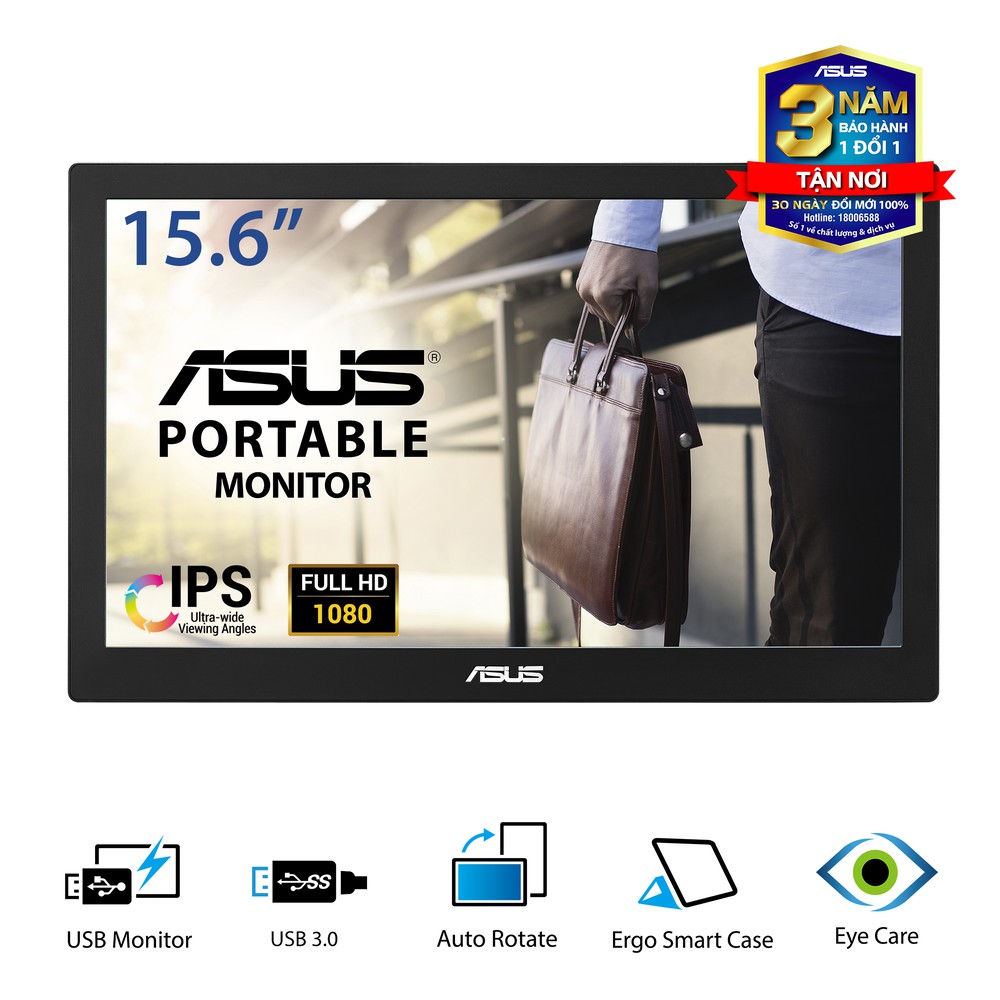 Màn Hình Di Động Nhỏ Gọn ASUS ASUS MB169BR+ 15.6'' Full HD (1920x1080) IPS - Hàng Chính Hãng