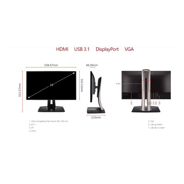Giới thiệu Màn Hình Đồ Họa ViewSonic VP2458 24″/IPS/FHD/60Hz/5ms/100% sRGB - Hàng Chính Hãng