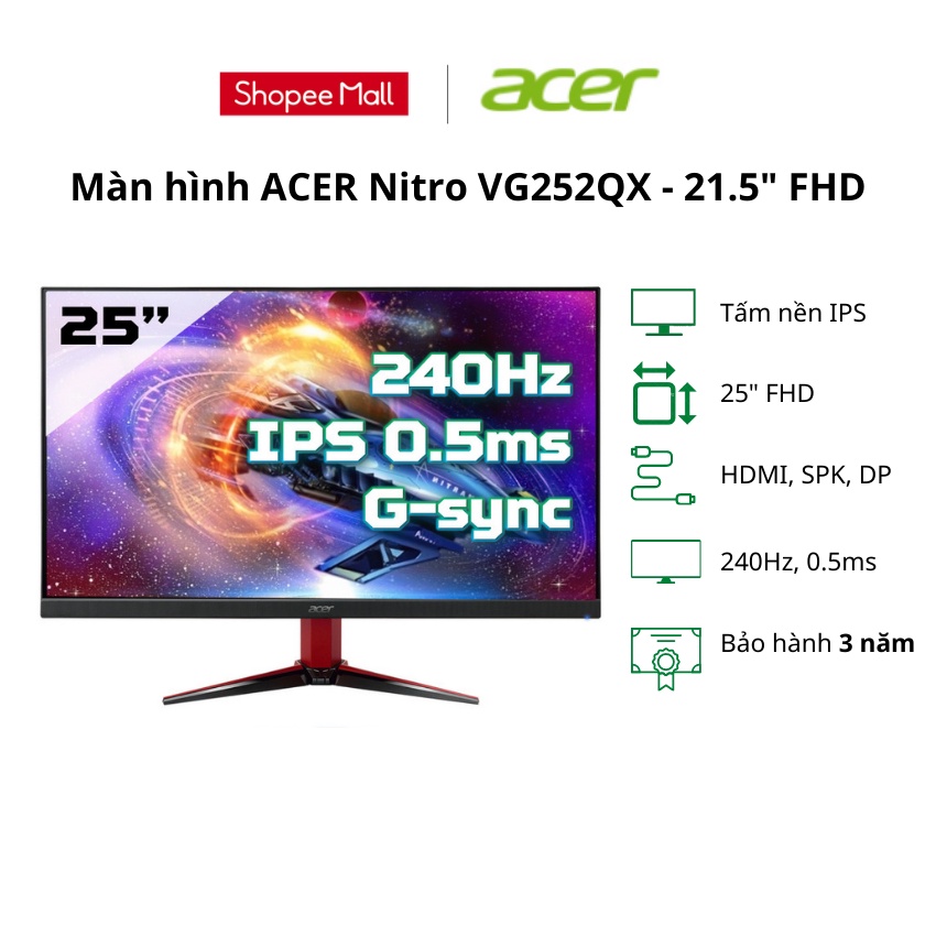 Máy tính & Laptop > Màn Hình || Màn hình máy tính Acer Nitro VG252QX - 25 inch FHDCòn hàng