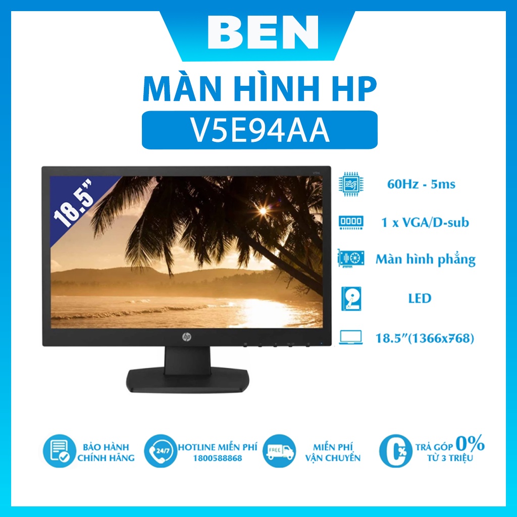 Màn hình máy tính HP 18,5 inch Wile LED, Backlit, 3Y WTY ; V5E94AA (1366x768/60Hz/5ms) . Bảo hành 36 tháng.