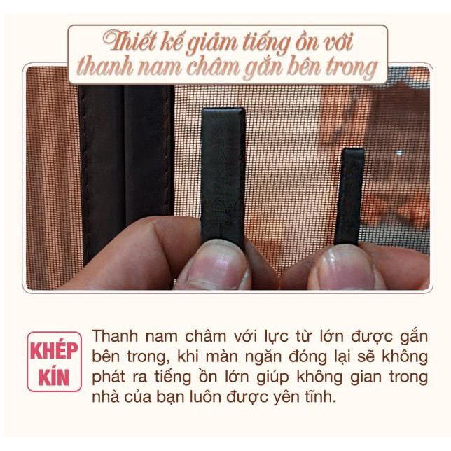 - Thanh nam châm với lực từ lớn được gắn bên trong, khi màn ngăn đóng lại sẽ không phát ra tiếng ồn lớn giúp không gian trong nhà của bạn luôn được yên tỉnh.