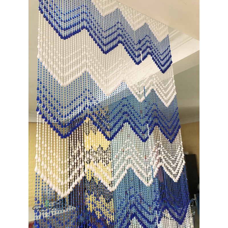 Nhà cửa & Đời sống > Trang trí nhà cửa > Rèm cửa, màn che || Màn rèm hạt nhựa trắng xanh nước biển treo cửa đường luồng [ KT: 0,8x2; 1x2; 1.2x2] làm theo kích thước yêu cầuCòn hàng
