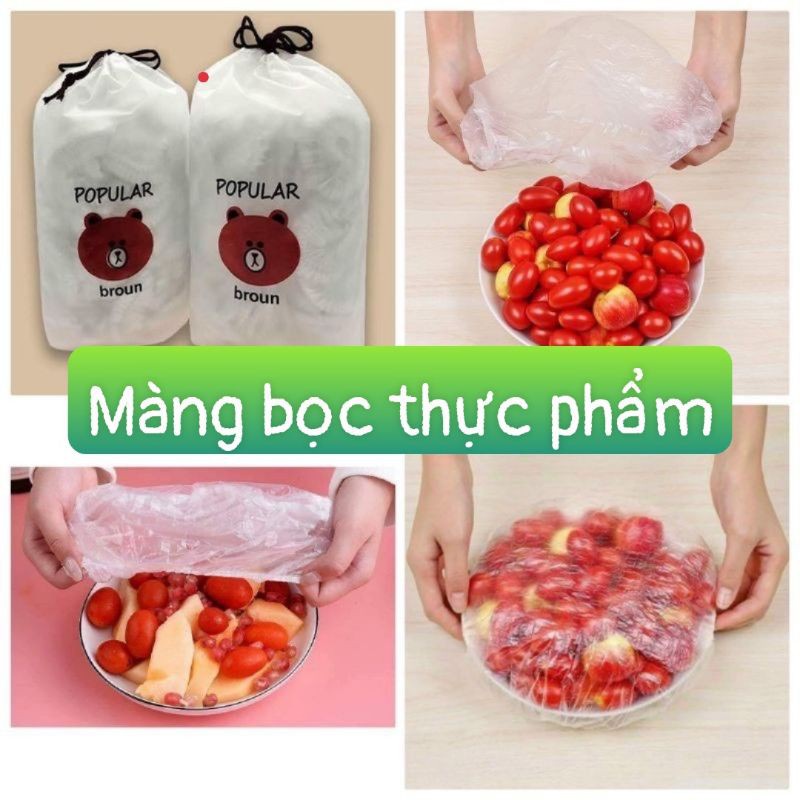 Màng bọc thực phẩm co giãn siêu dai có chun hình túi gấu set 100 chiếc PE