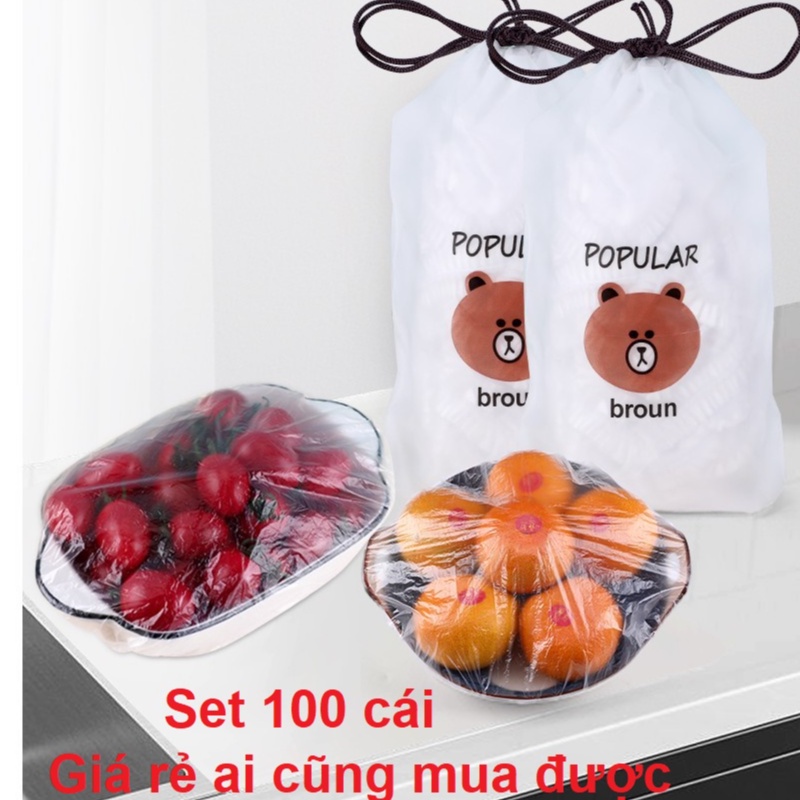 Màng bọc thực phẩm co giãn siêu dai có chun hình túi gấu set 100 chiếc khogiasi.247Sản Phẩm :