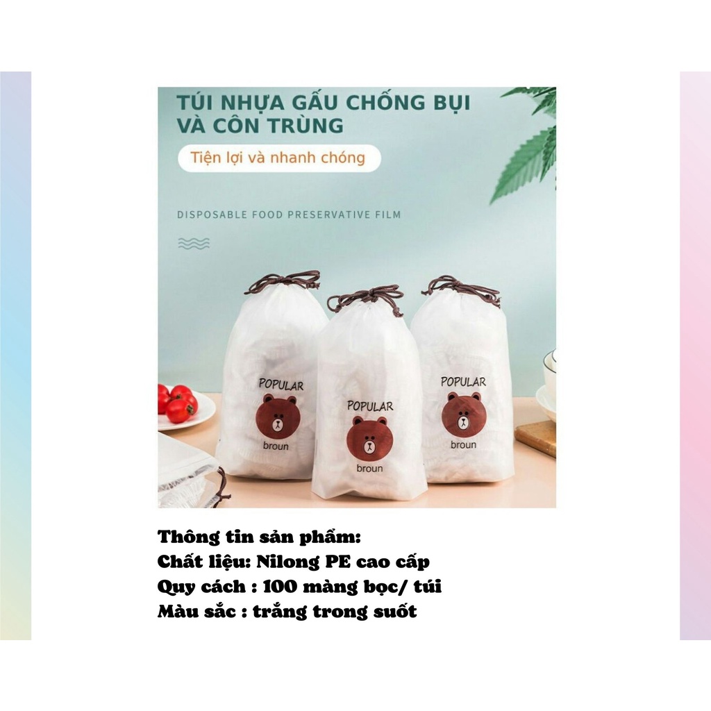 + Túi bọc thực phẩm bo chun co giãn phiên bản mới làm từ chất liệu nilong PE an toàn cho sức khỏe người sử dụng.
