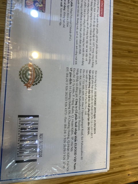 * Màng bọc thực phẩm EUFOOD Wrap hàng chính hãng công ty chuẩn từ tem nhãn đến chất lượng.* Kích cỡ : chiều rộng tiêu chuẩn 30cm ( độ rộng đủ để chùm vừa bát / đĩa đường kính < 28 cm ), mỗi cuộn bọc sẽ có chiều dài sử dụng 250m.