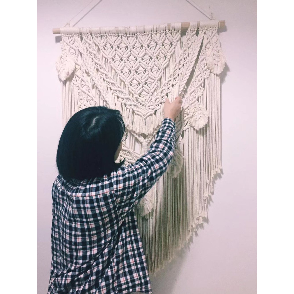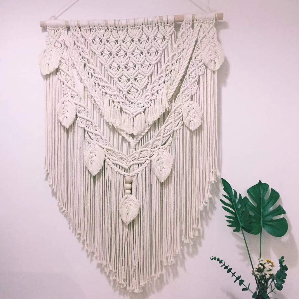 Nhà cửa & Đời sống > Trang trí nhà cửa > Rèm cửa, màn che || Mành rèm lá macrame treo tường trang trí nhà cửa, homestay, quán cafe kèm thanh gỗ treo decorCòn hàng