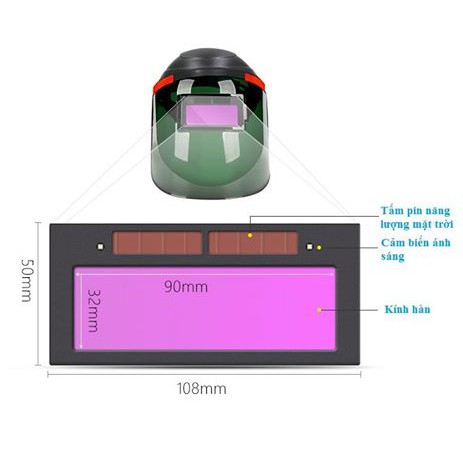 Kính mặt nạ hàn sử dụng pin năng lượng, dùng chính ánh sáng hàn để nạp pin nên không cần sạc.