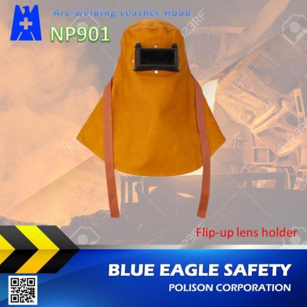 Giới thiệu Mặt nạ hàn trùm đầu Blue Eagle NP901 da thật, kính hàn 2 lớp vùng quan sát rộng, cho hàn điện, Mig-Mag, Tig, Plasma