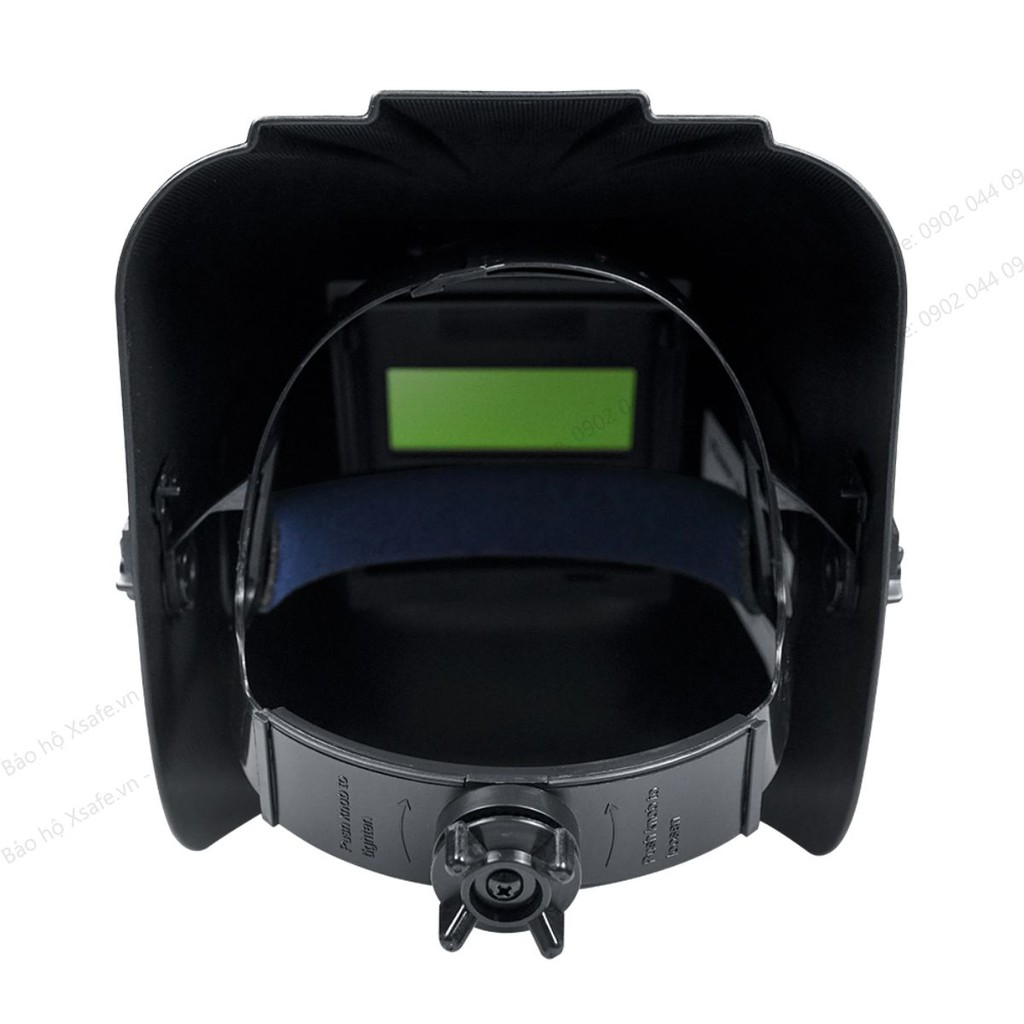- Có độ nhạy cao, có đèn led báo hiệu khi pin yếu. Mặt nạ hàn đội đầu có núm vặn điều chỉnh lên xuống, có miếng lót trán thấm hút mồ hôi.