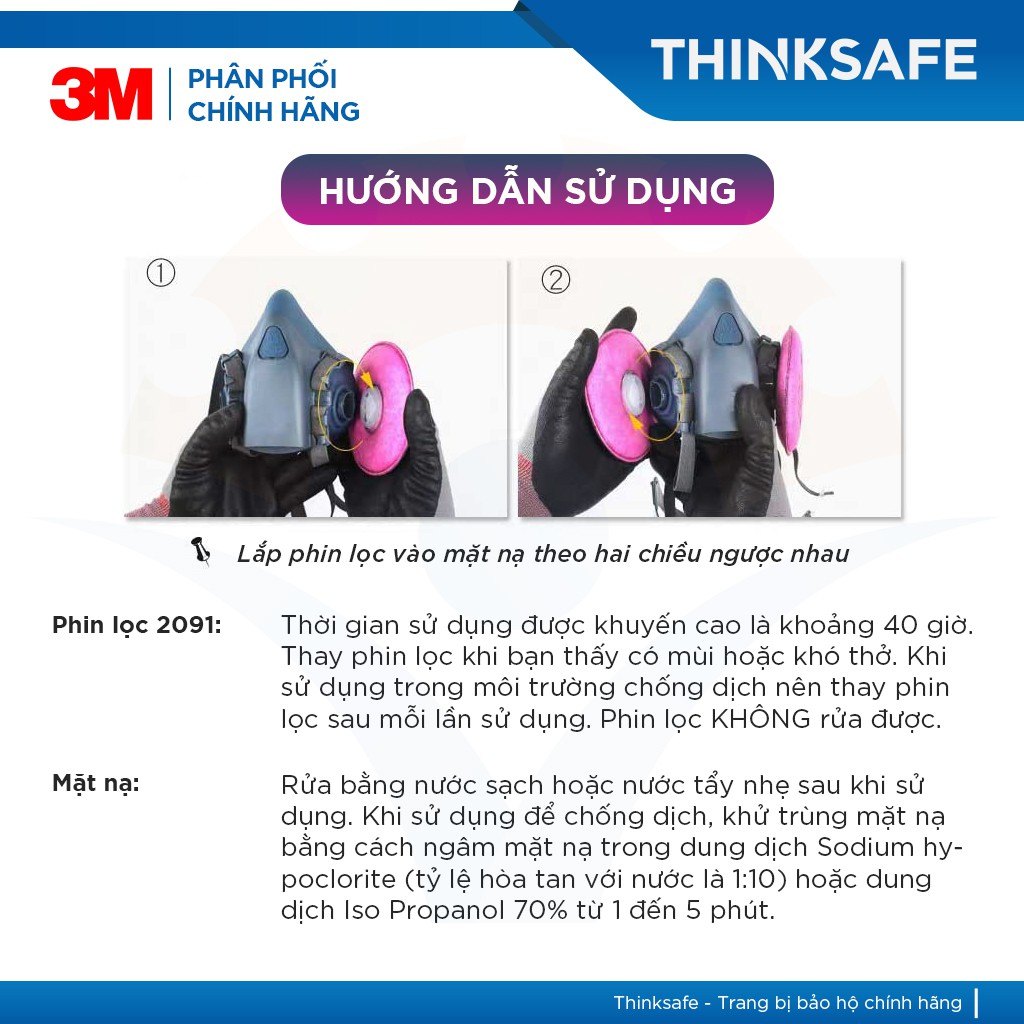 Giới thiệu Mặt nạ phòng độc 3M Thinksafe, chống độc, chuyên phòng dịch, chống giọt bắn, lọc bụi mịn pm2.5, khói hàn - 7502/2097