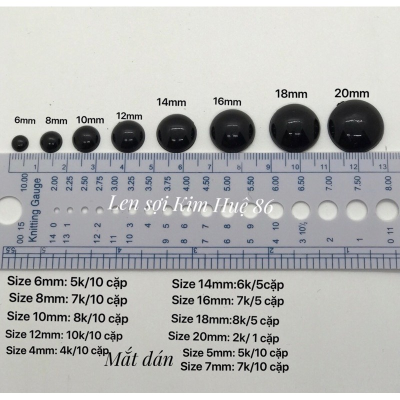 Mắt thú dán đen bóng dùng cho thú bông, túi tỏi, trang trí giày, dép, mũ...Giá cập nhật trên ảnh