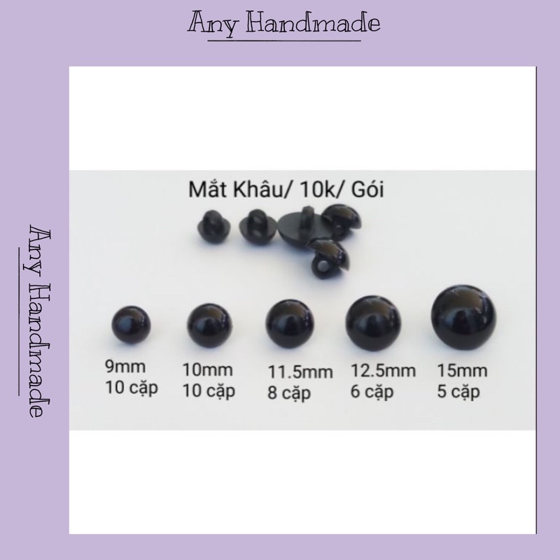 Mắt thú bông khâu loại bóng đẹp.Có các size 9mm, 10mm, 11.5mm, 12.5mm, 15mm.