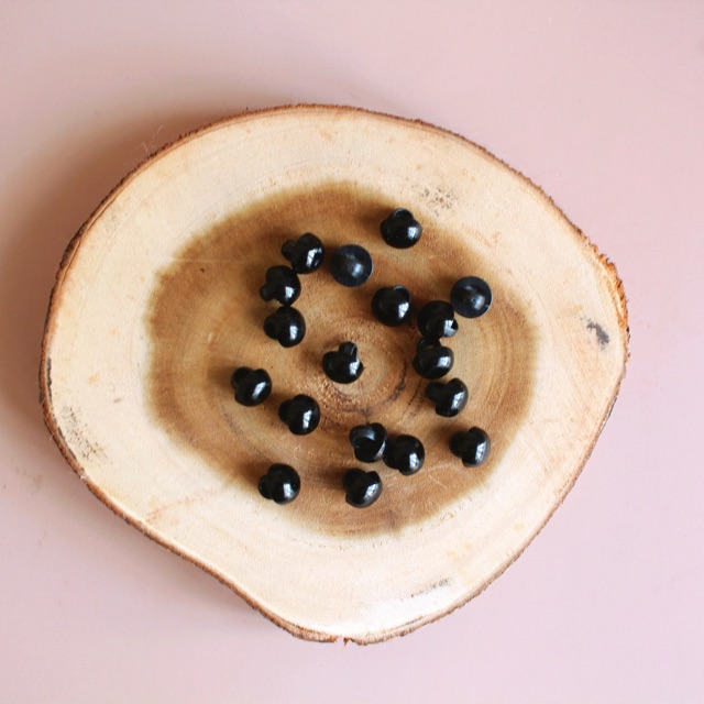 MẮT THÚ KHÂU (bán theo đôi)Nếu các bạn muốn gắn mắt thú sau khi nhồi bông thì xài mắt thú khâu nhé. Mắt khâu còn tạo độ lõm cho mắt thú trông giống thật hơn nữa đó. Mắt này có 3 size: 9mm, 10mm, 12.5mm.