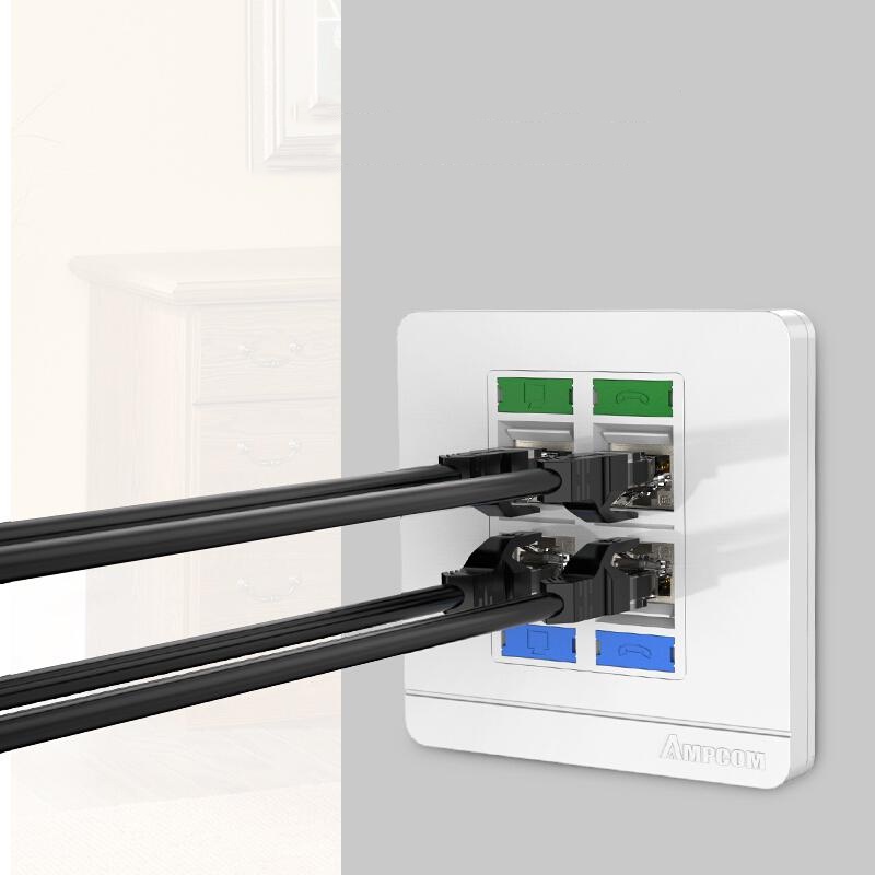 - Mặt Wallplate Ampcom được thiết kế để hỗ trợ jack cắm mạng, thoại.