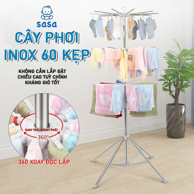 💖 Chất liệu: Inox, 2 tầng móc kẹp tổng cộng 60 kẹp và 1 tầng thanh phơi