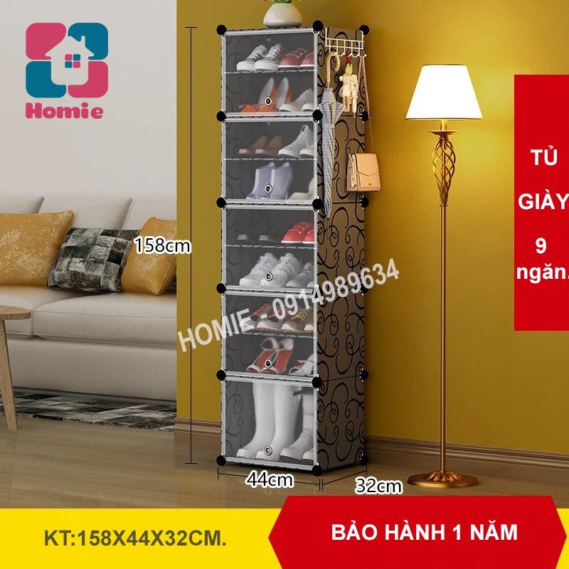 {Mẫu mới} Tủ giày 9 ngăn (1 ô bốt) Cao 158cm Rộng44cm Sâu32cm