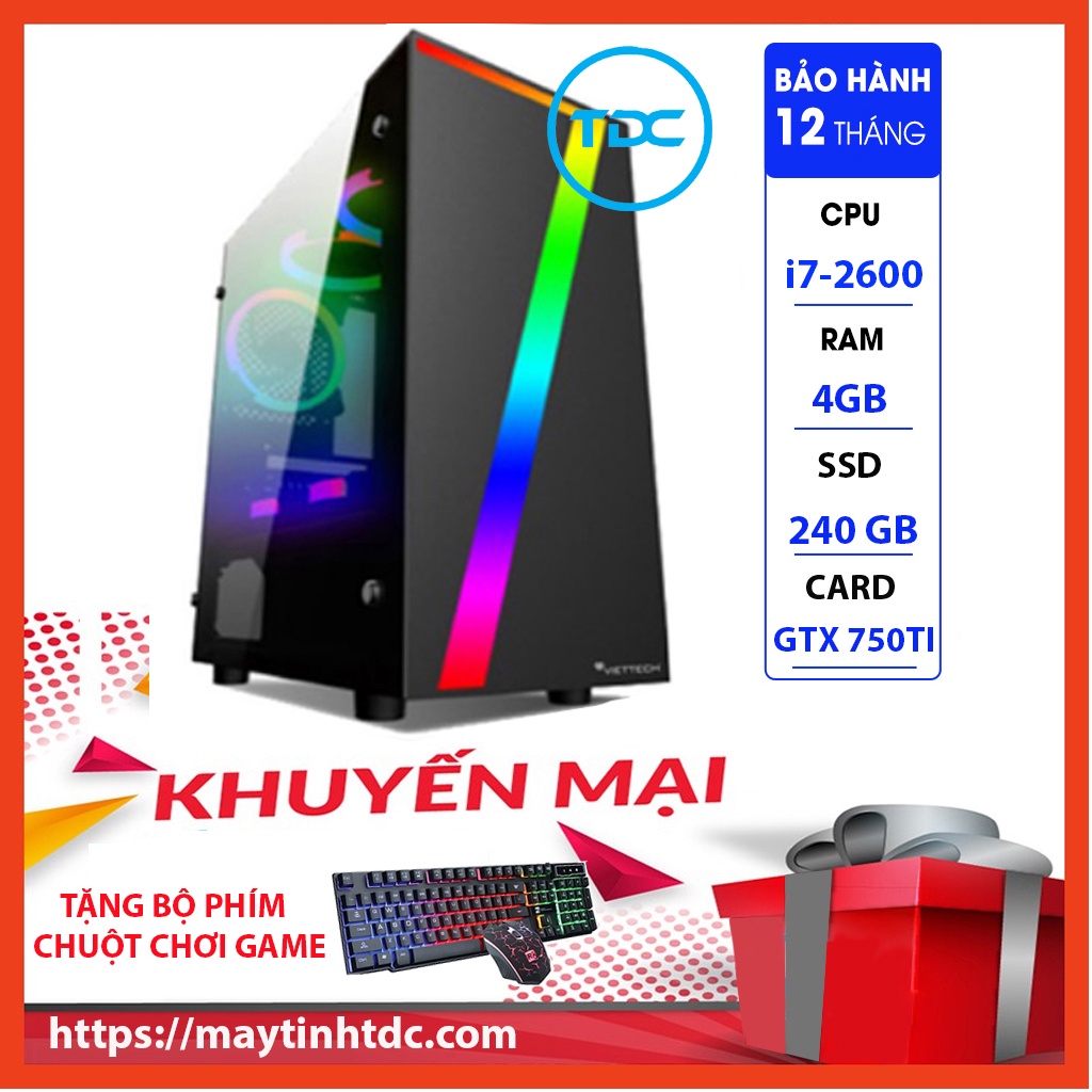 MAX PC GAMING X7 CPU Core i7-2600 Ram 4GB SSD 240GB GTX 750TI Chơi PUBG,LOL, CF, Fifa4, Đế chế ...+ Tặng Ngay Bàn Phím Giả Cơ,Chuột Led 7 Màu - Máy Tính Chơi Game,Thùng cây máy tính để bàn chơi gameàu- Quà tặng: TẶNG NGAY : BÀN PHÍM GIẢ CƠ 7 MÀU + CHUỘT LED 7 MÀU