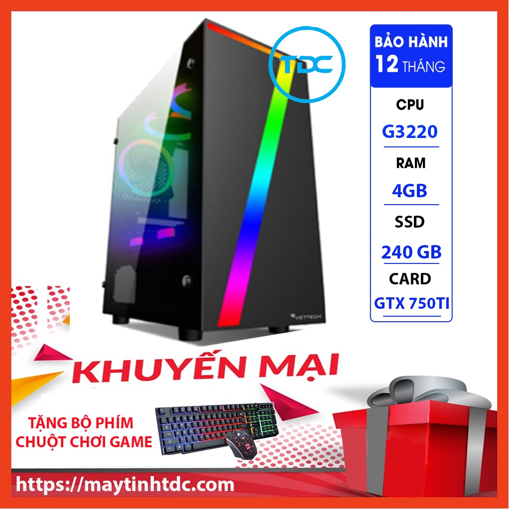 MAX PC GAMING X7 CPU G3220 Ram 4GB SSD 240GB GTX 750TI Chơi PUBG,LOL, CF, Fifa4, Đế chế ...+ Tặng Ngay Bàn Phím Giả Cơ,Chuột Led 7 Màu - Máy Tính Chơi Game,Thùng cây máy tính để bàn chơi gameàu- Quà tặng: TẶNG NGAY : BÀN PHÍM GIẢ CƠ 7 MÀU + CHUỘT LED 7 MÀU