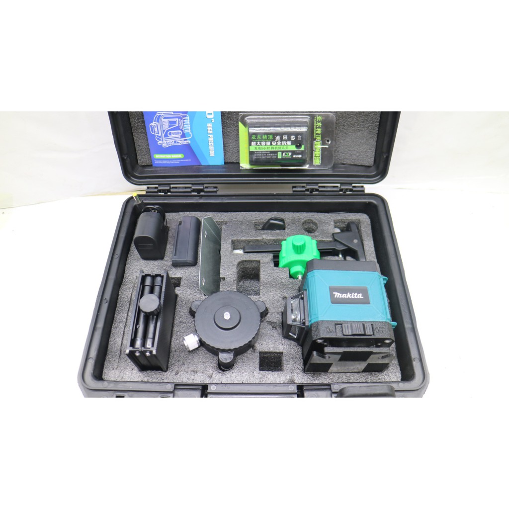 Máy Cân Mực Bắn Cốt Máy Cân Bằng Laser MAKITA 12 Tia Xanh Laser Có Điều Khiển, Sạc, Chân Đế Máy, Hộp Nhựa