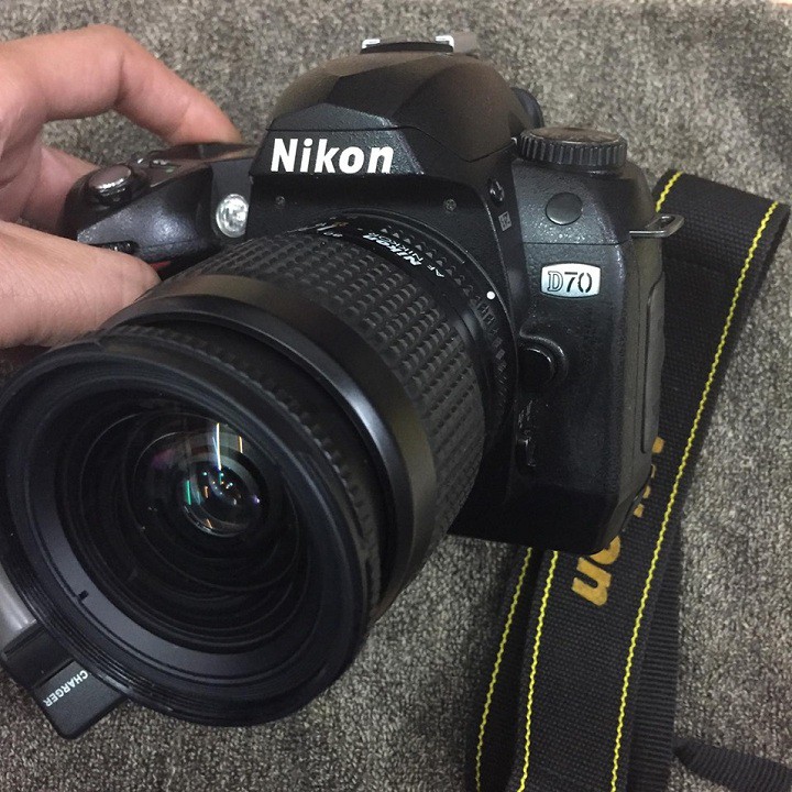 Máy ảnh Nikon D70 kèm lens 28-80 đẹp sưu tầmBộ Nikon D70 rất đẹp, hoạt động hoàn hảo, kèm pin, sạc thẻ nhớ, dây đeo đầy đủ