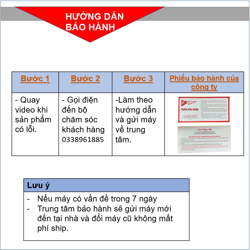 - Đổi trả trong vòng 3 ngày. Bảo hành 12 Tháng.