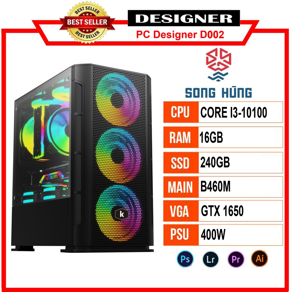 Máy tính & Laptop > Máy Tính Bàn > Bộ Máy Tính Bàn || Máy Bộ PC Designer D002 (i3-10100/B460/16GB RAM/GTX 1650/240GB SSD/400WTản nhiệt 400Ti Color Master)Còn hàng