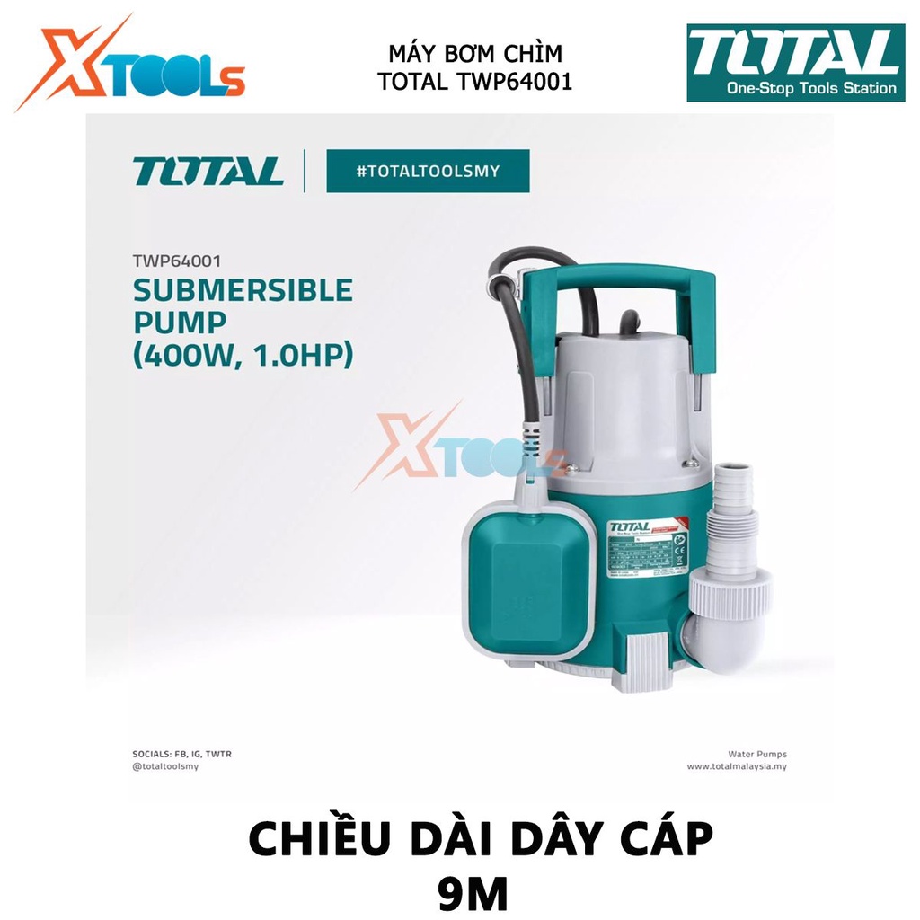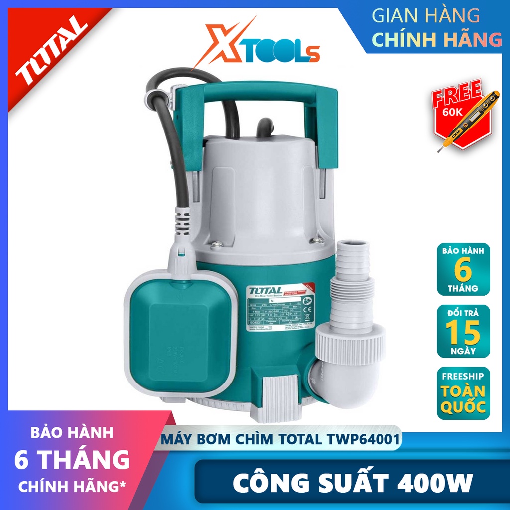 Nhà cửa & Đời sống > Dụng cụ & Thiết bị tiện ích > Máy bơm nước & phụ kiện || Máy bơm chìm nước sạch TOTAL TWP64001 máy bơm thả chìm tự động 220V, Công suất đầu vào 400W, hút nước cống, nước tù đọngCòn hàng
