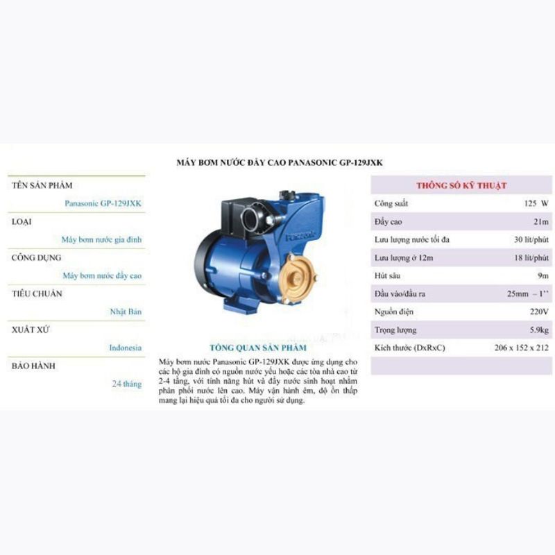 Thông số cơ bản của máy bơm nước Panasonic 129JXK: