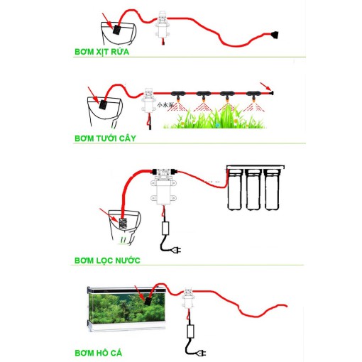 - Công suất 120w, áp lực 120PSI, tiêu thụ 7-9l/min (với nguồn 12v-10A, có thể cao hơn với nguồn mạnh hơn), chế độ tự động ngắt (tự ngắt khi đóng đầu nước ra, tự chạy lại khi mở khóa đầu nước ra)