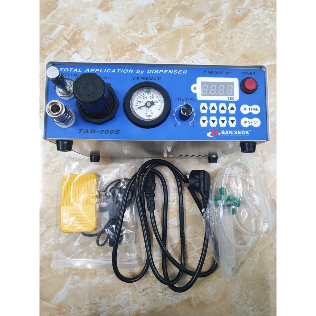 Máy bơm keo TAD-200SMáy bơm keo tự động sử dụng áp xuất không khí để đẩy keo ra trong thời gian đã định.