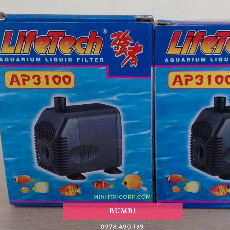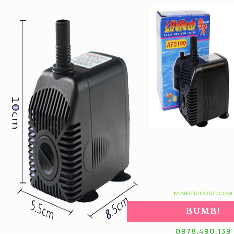 Bơm Lifetech AP 3100 loại máy bơm nhỏ có thể đẩy nước lên đến độ cao 2.8M, lưu lượng 1350L/hCông suất: 28W