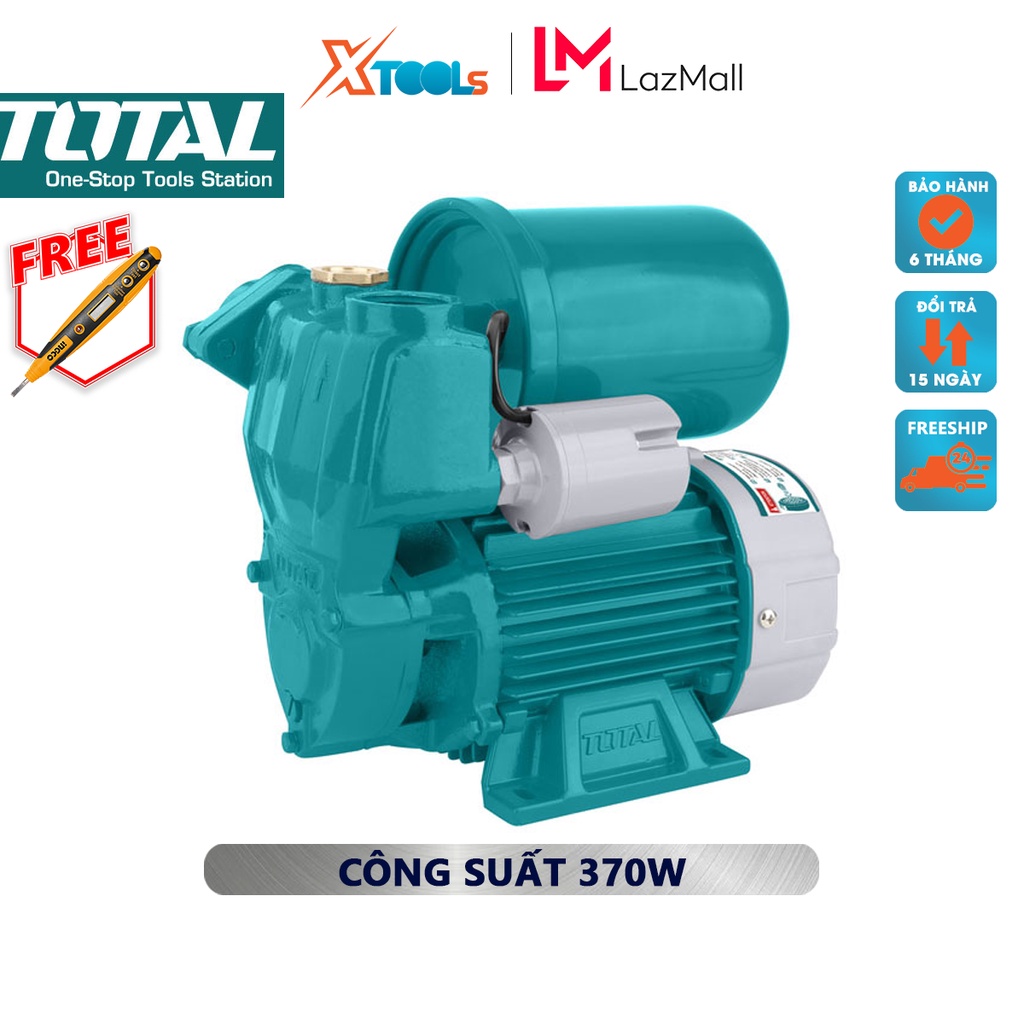 Máy bơm nước 370W Total TWP93706 - máy bơm nước động tự mồi, mô tơ dây đồng, cánh quạt nước bằng đồng, độ hút tối đa 8m,