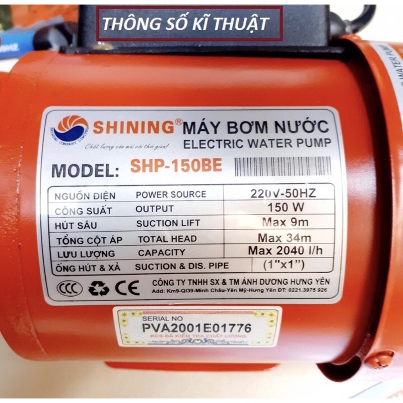 Máy bơm nước chân không Shining 150E hàng Việt Nam chính hãng giá rẻ tặng kèm dong , cổ hút , cổ sả , băng tan
