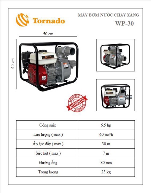 Nhà cửa & Đời sống > Dụng cụ & Thiết bị tiện ích > Máy bơm nước & phụ kiện || Máy bơm nước chạy xăng Tornado WP-30 ( chính hãng )Còn hàng