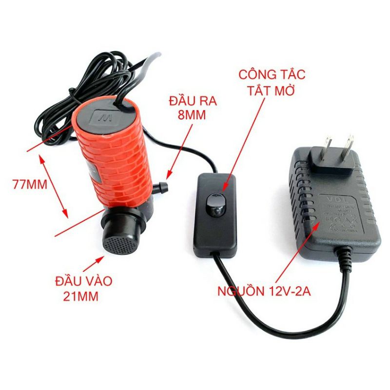 CHI TIẾT SẢN PHẦM- Kiểu máy: Bơm chìm 12V - 2A