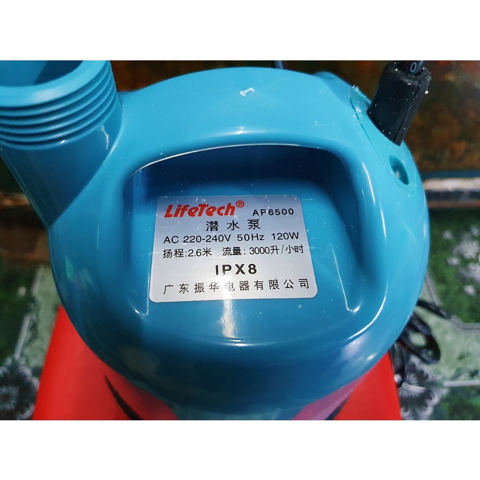 Giới thiệu MÁY BƠM NƯỚC HỒ CÁ LIFETECH AP 6500 120W 2M6 3800L/H