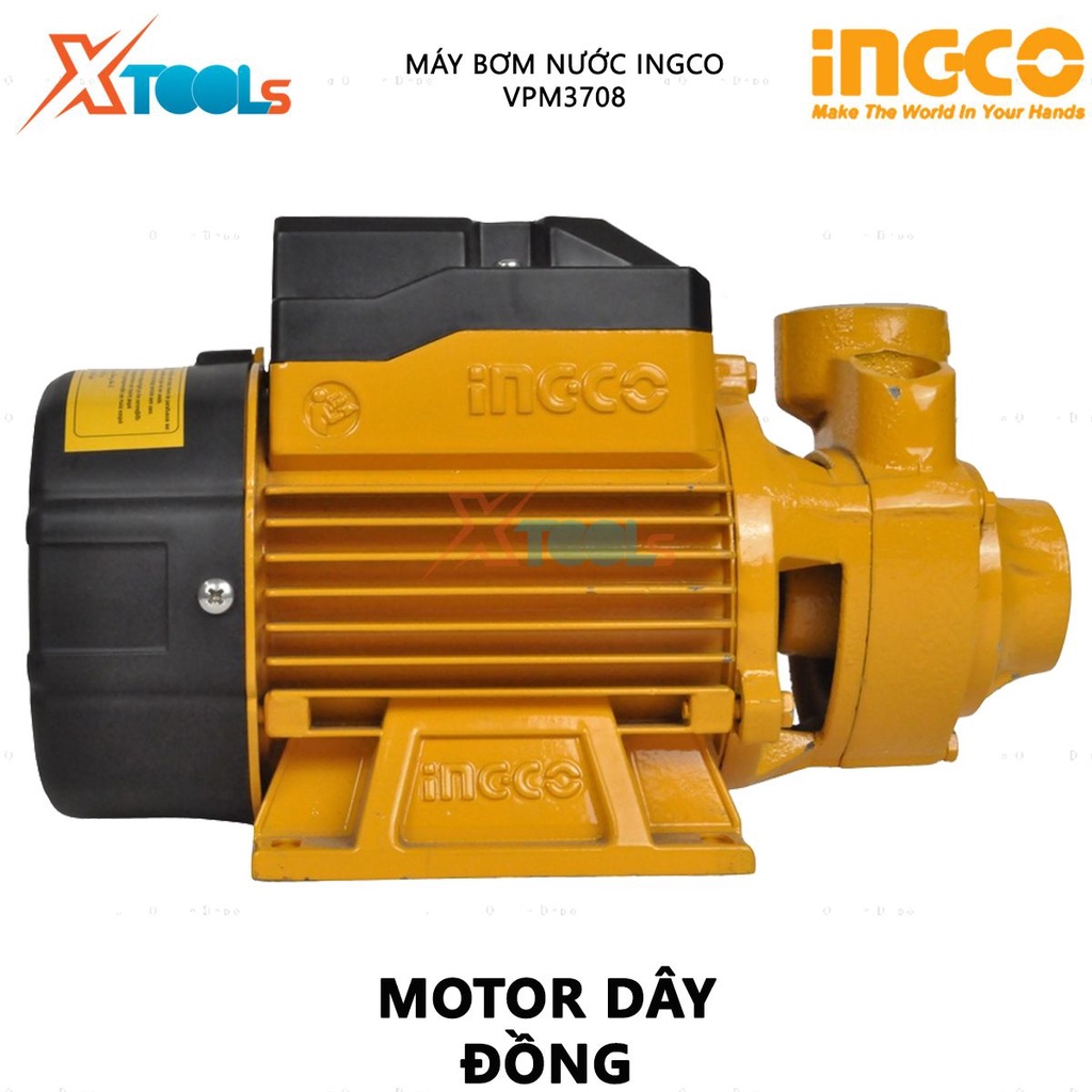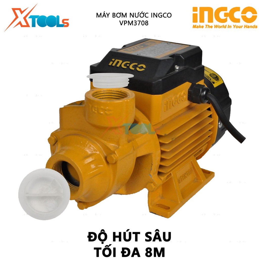 Máy bơm nước INGCO VPM3708 | máy bơm hút nước 370W (0.5HP), mô tơ dây đồng, máy bơm gia đình, bơm tưới cây, phi 1''x1''