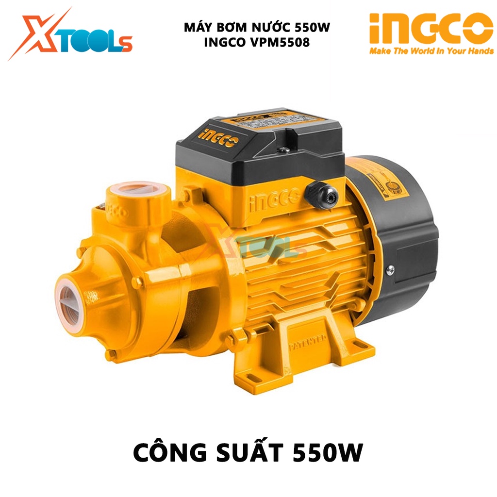 Máy bơm nước INGCO VPM5508 | máy bơm đẩy cao 550W (0,75HP), chiều cao bơm 45m, độ hút sâu 8m, mô tơ dây đồng tăng áp lực