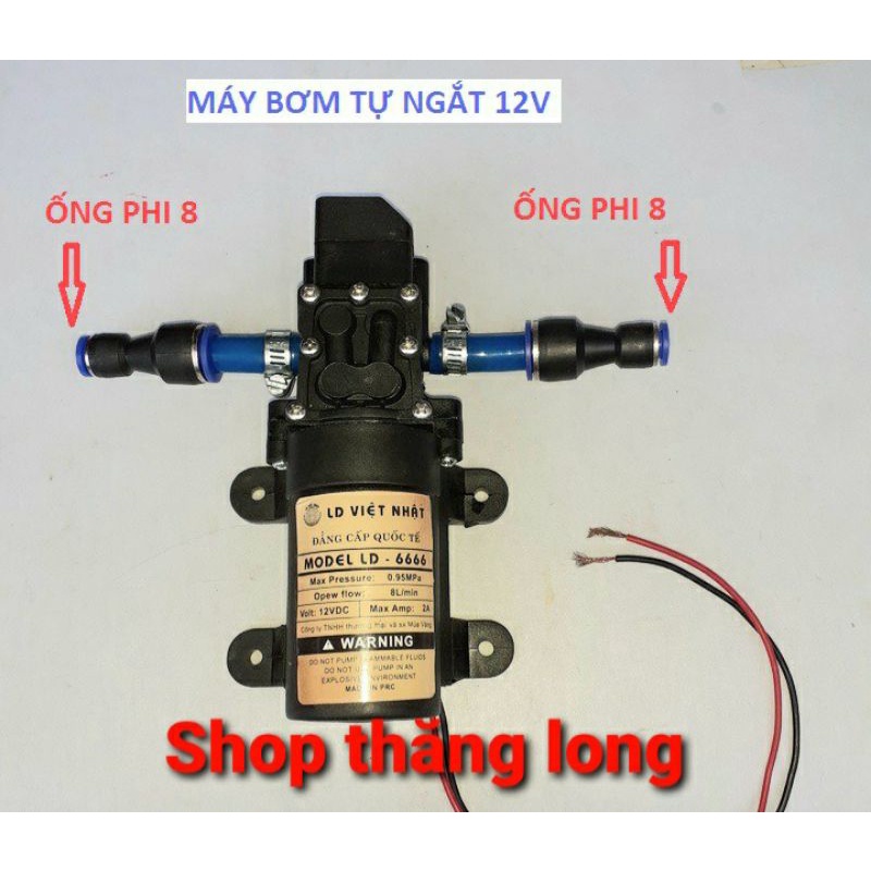 máy bơm nước mini 12v áp lực cao - (bơm tăng áp Việt nhật 12v + chuyển ống 8mm)