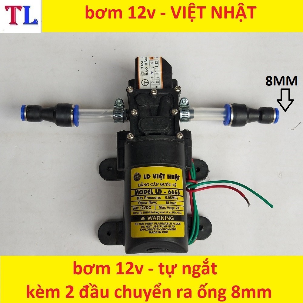 máy bơm nước mini 12v áp lực cao - máy bơm phun sương (bơm tăng áp mini 12v+chuyển ống 8mm)