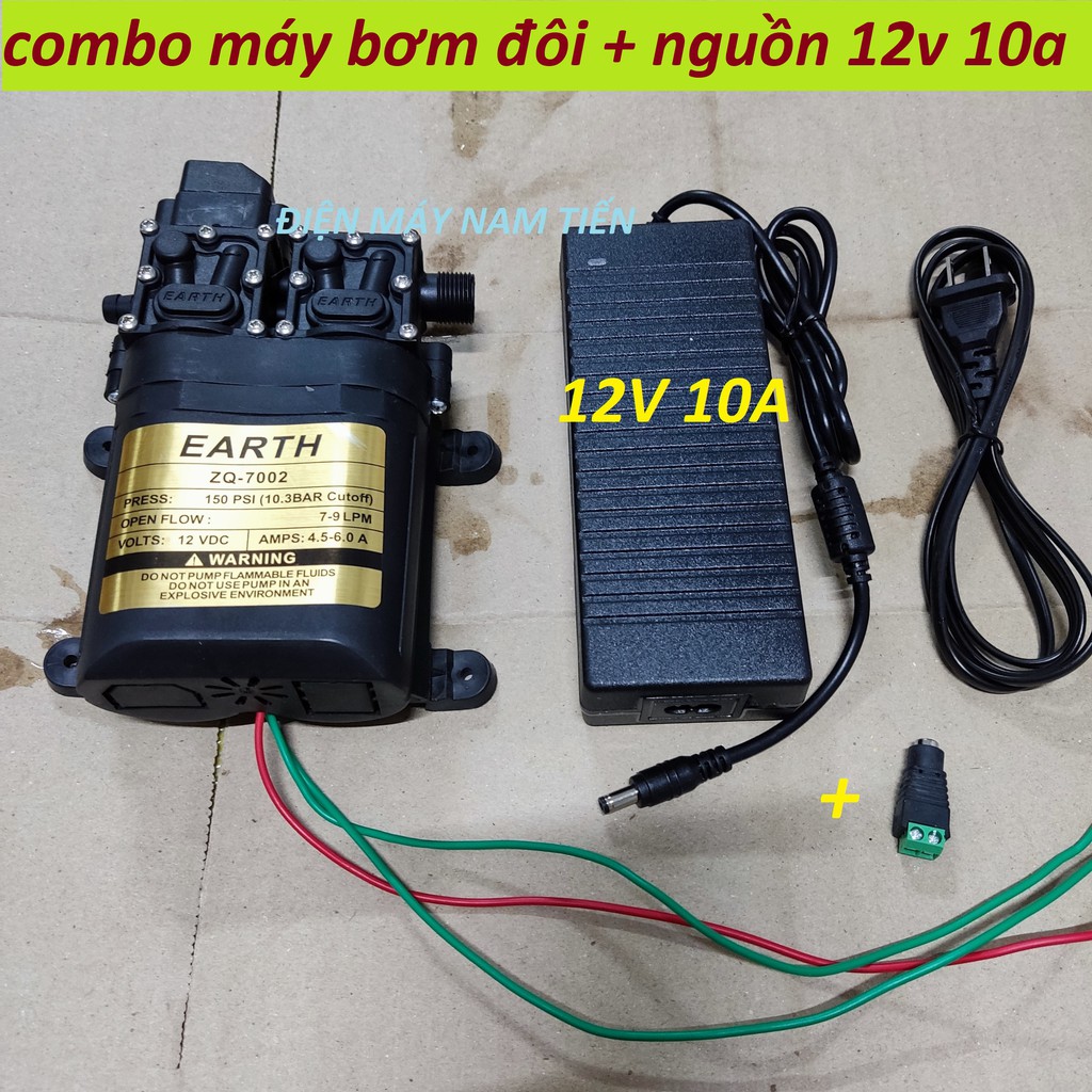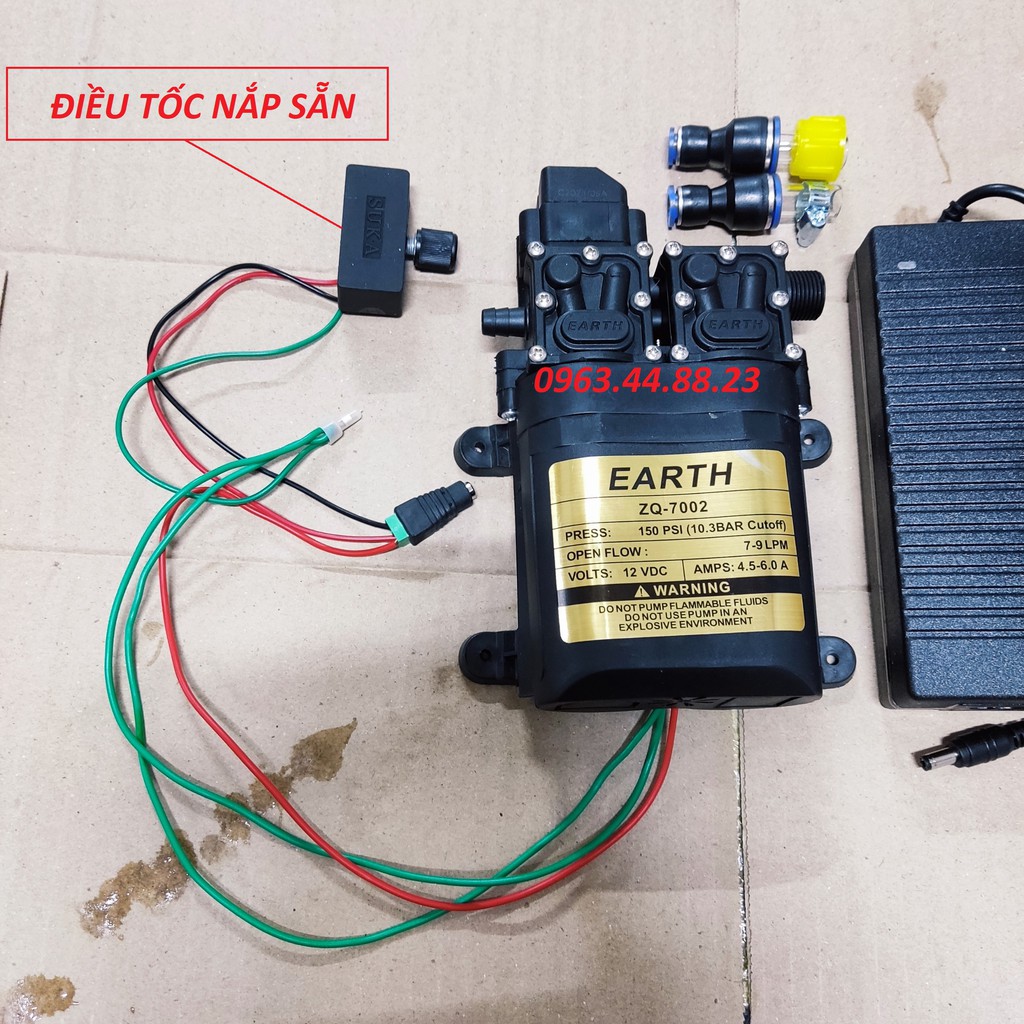 máy bơm nước mini 12v đôi 100w EARTH hàng Taiwan tăng kèm ren 17mm ra 8mm