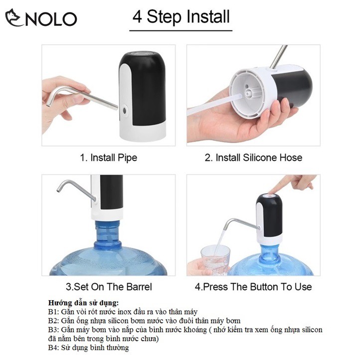Dễ dài cài đặt đơn giản chỉ các gắn ống lên nắp bình, máy sẽ hoàn toàn tự động bơm và rót nước ra ngoài.