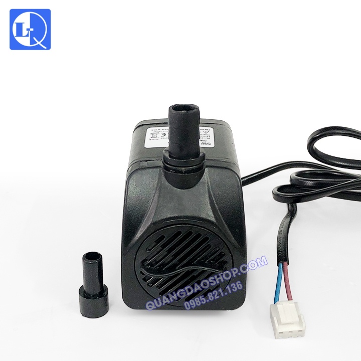 - Do bơm này thiết kế dùng cho quạt hơi nước nên dây nguồn của bơm có giắc cắm bo mạch, nêu AE dùng cho công việc khác như bơm dùng cho bể cá, bể thủy sinh, thác nước tiểu cảnh cảnh.... thì khi về AE phải đấu thêm phích cắm vào để cắm vào ổ điện nhé.