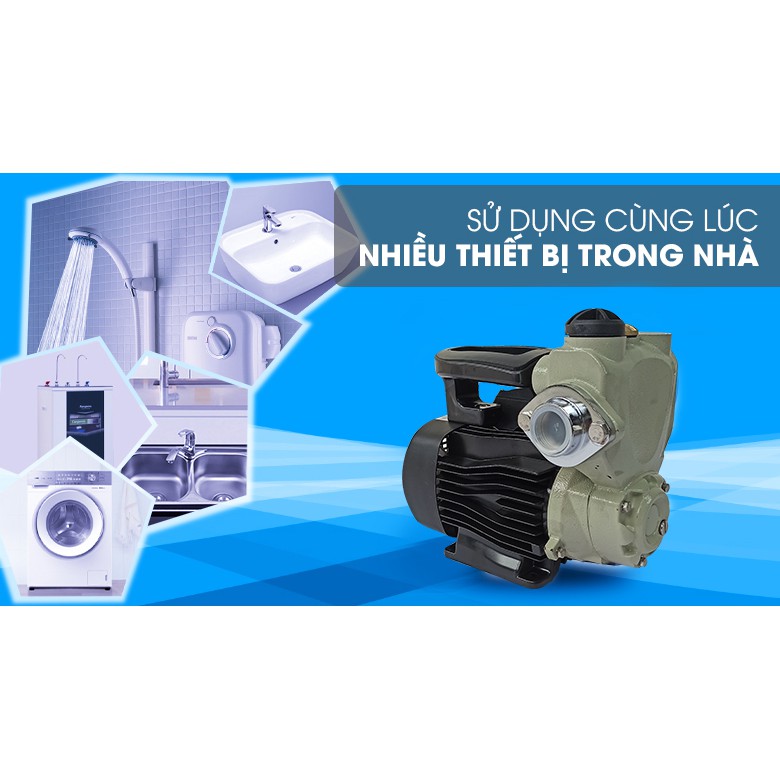 - Thuộc dòng máy bơm tăng áp, phù hợp cho gia đình có nước yếu.